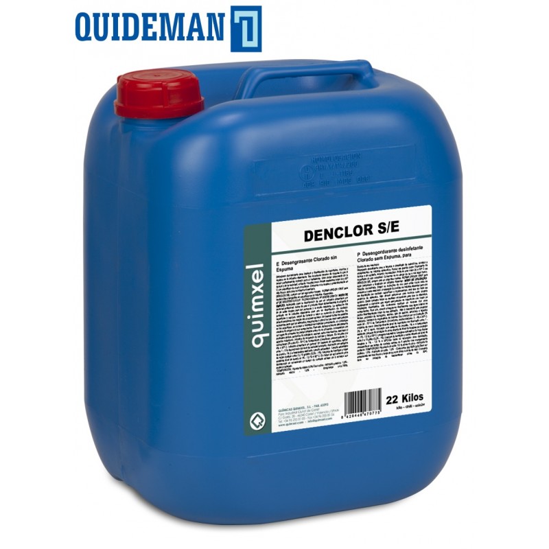 Detergente desinfectante para limpieza y desinfecci de superficies, circuitos y equipos en la industria alimentaria. Sus soluciones carecen de espuma lo que lo hacen perfectamente indicado para el tratamiento. Gran poder dispersante de la dureza y de la suciedad, evitando incrustaciones. Puede emplearse entre 20 y 60 C con superficies de acero inoxidable. Conservar a la sombra y preferiblemente en sitio fresco. DENCLOR S/E, cumple con las siguientes normas: NORMA UNE-EN 13697 para bactericidas y fungicidas en superficies en la Industria
